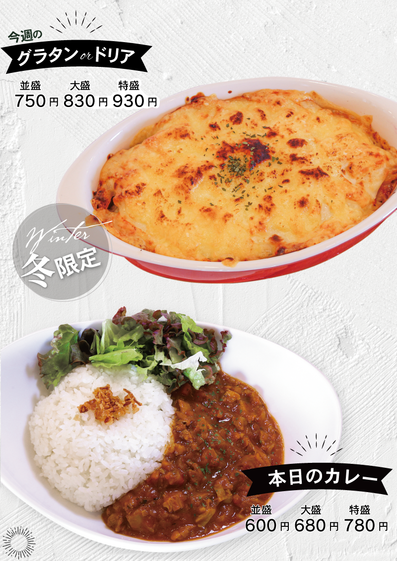 毎日食べるものだからこそ、飽きないような工夫を。日替わりメニューや、スタンダードな味をそろえ、お待ちしています。